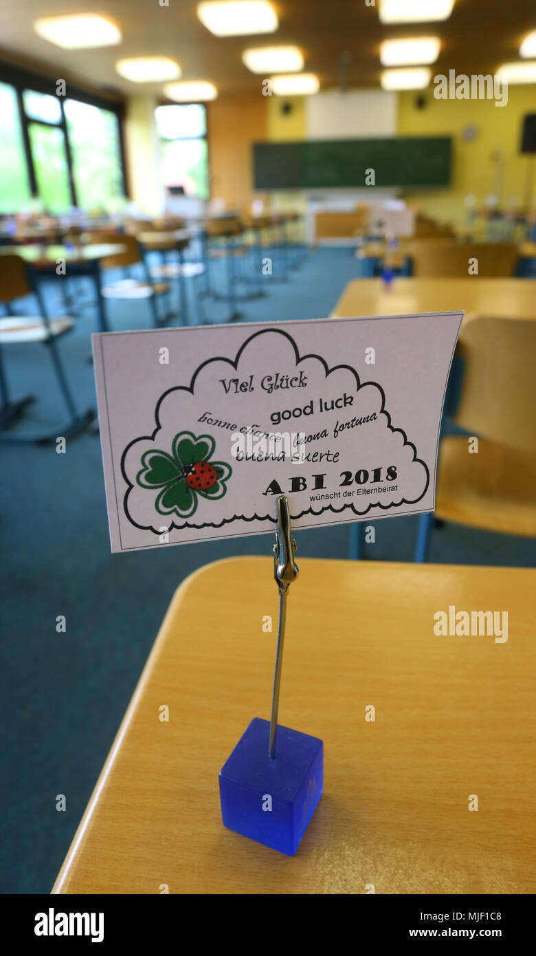 04 May 2018, Germany, Kaufbeuren: Messages wishing students ‘good